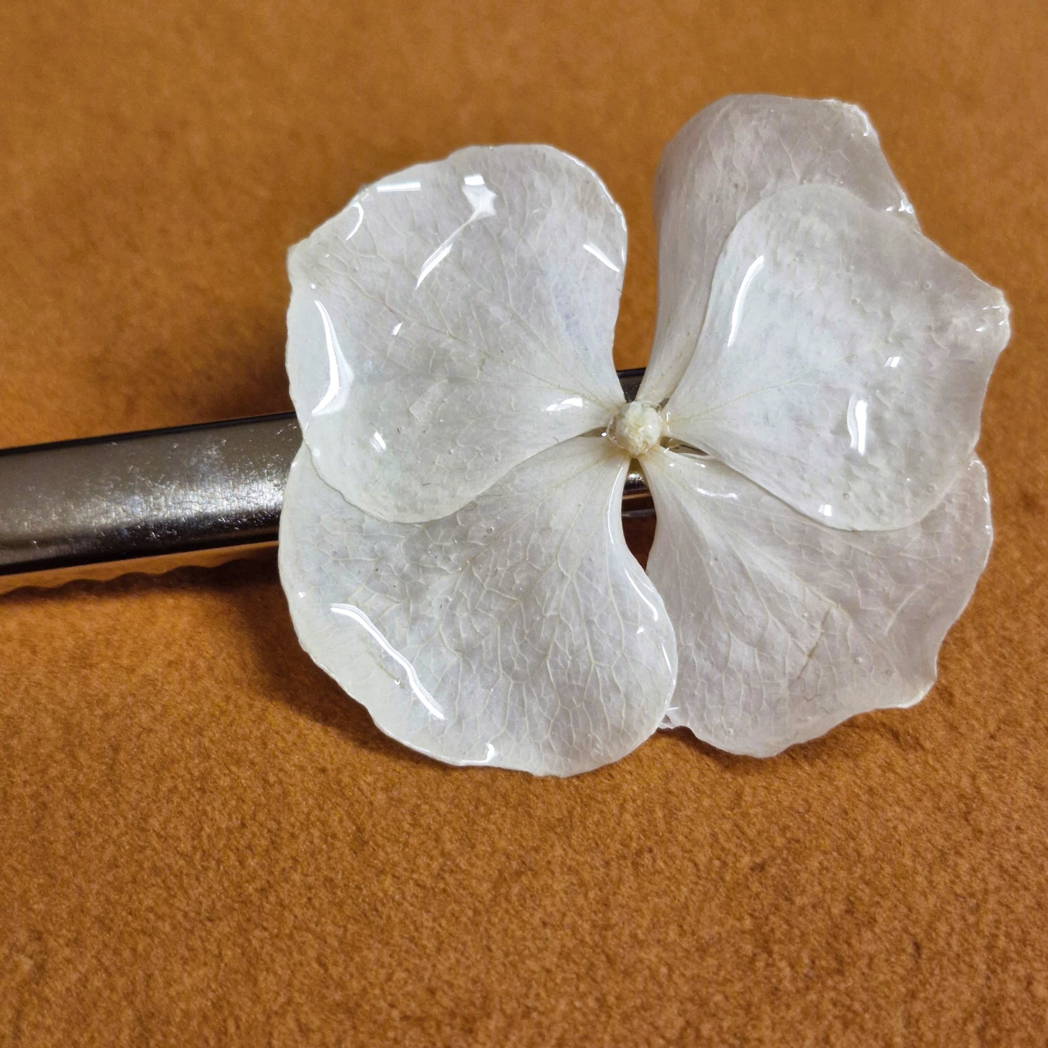 - Materiale: Ortensia resinata, fiore vero in resina, clip per capelli.
